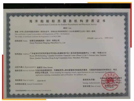 热烈庆祝PA视讯shouji石油船舶船务(深圳) 有限公司于2021年6月16日,正式取得《海洋船舶船员服务组织资质证书》。取得该资质后,PA视讯shouji石油船舶船务(深圳)有限公司可直接对本公司海员召开外派工作,成为拥有向海外或外国籍船舶外派海员